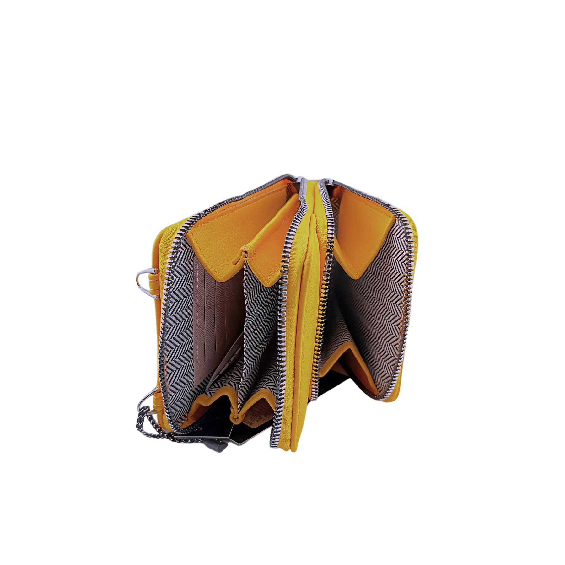 This practical and elegant small satchel is the perfect accessory for safely storing your essentials. Crafted from genuine mustard-colored leather, it offers a modern and timeless look. Ideal for city trips or travel, this satchel will accompany you everywhere in style.